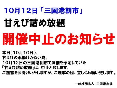 10月12日の三国港朝市で開催を予定していた「甘えび詰め放題」は