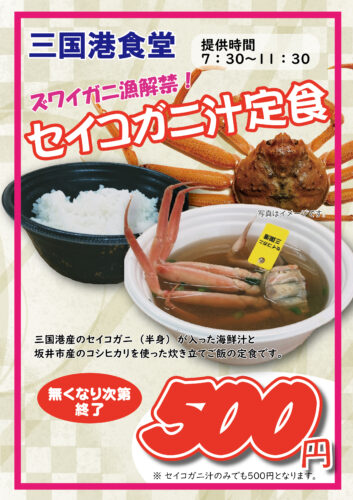 セイコガニ汁と炊き立てご飯のセットを500円で販売します!