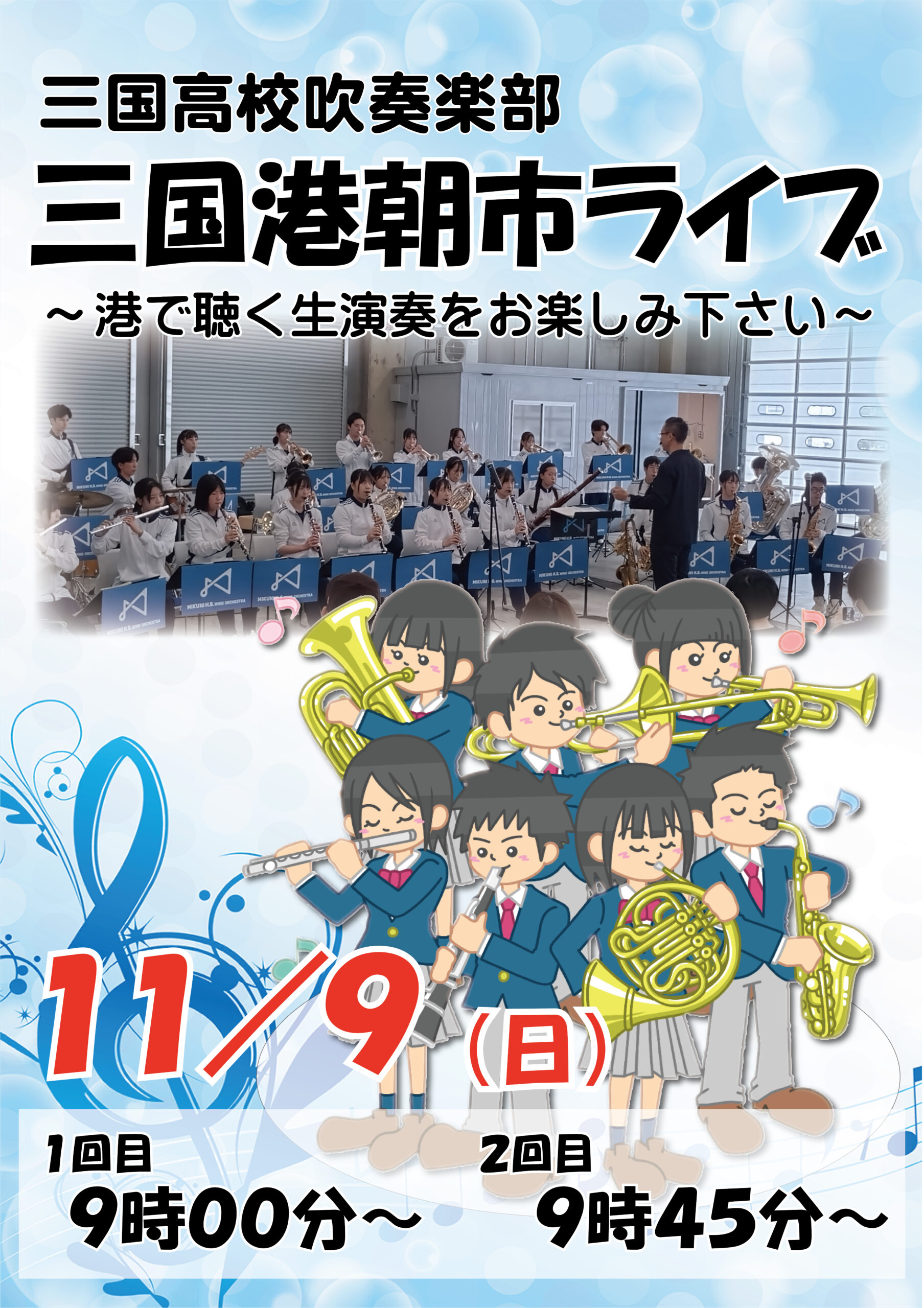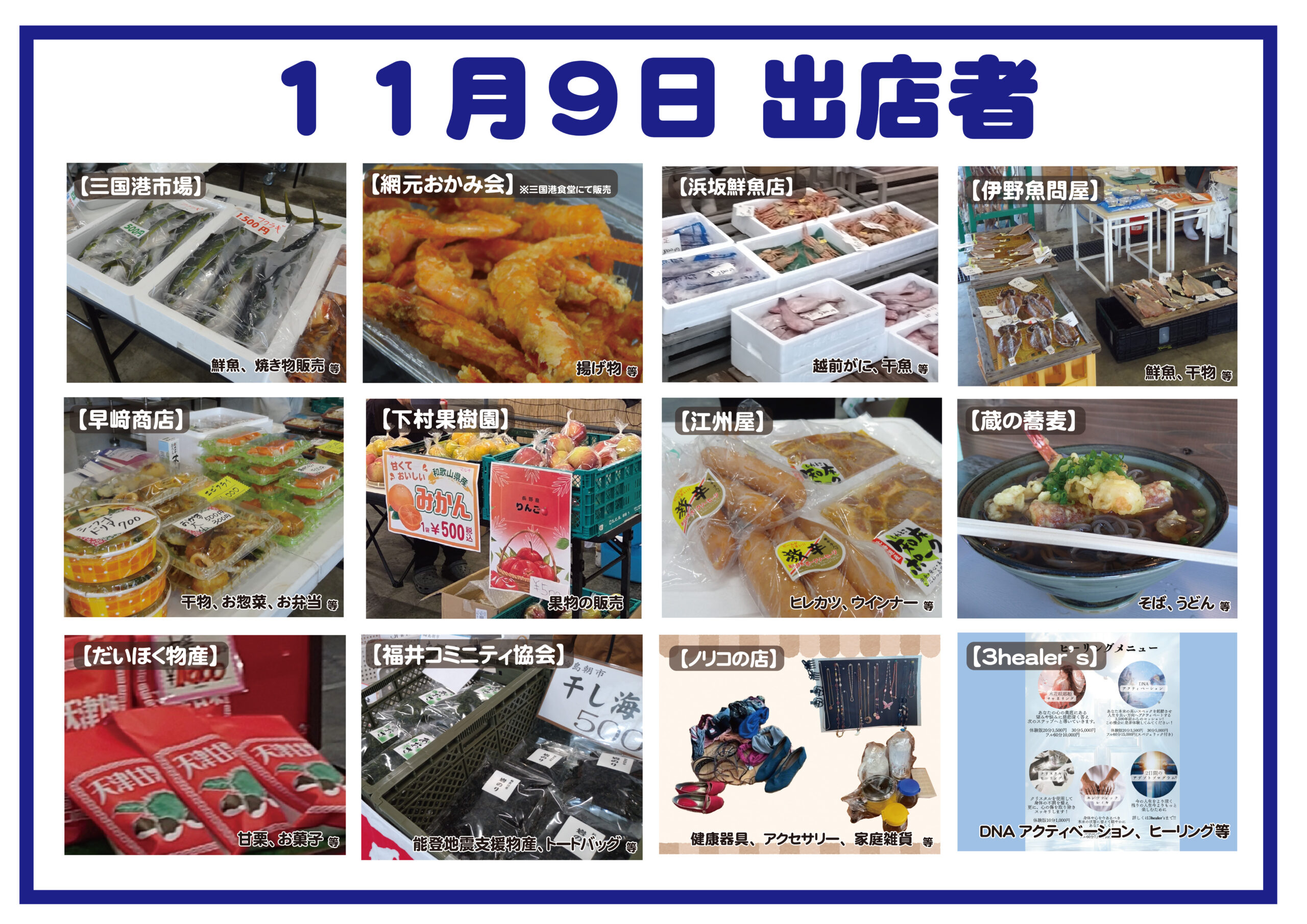 【三国港朝市 生LIVE】 1回目:9時00分~  2回目:9時45分~