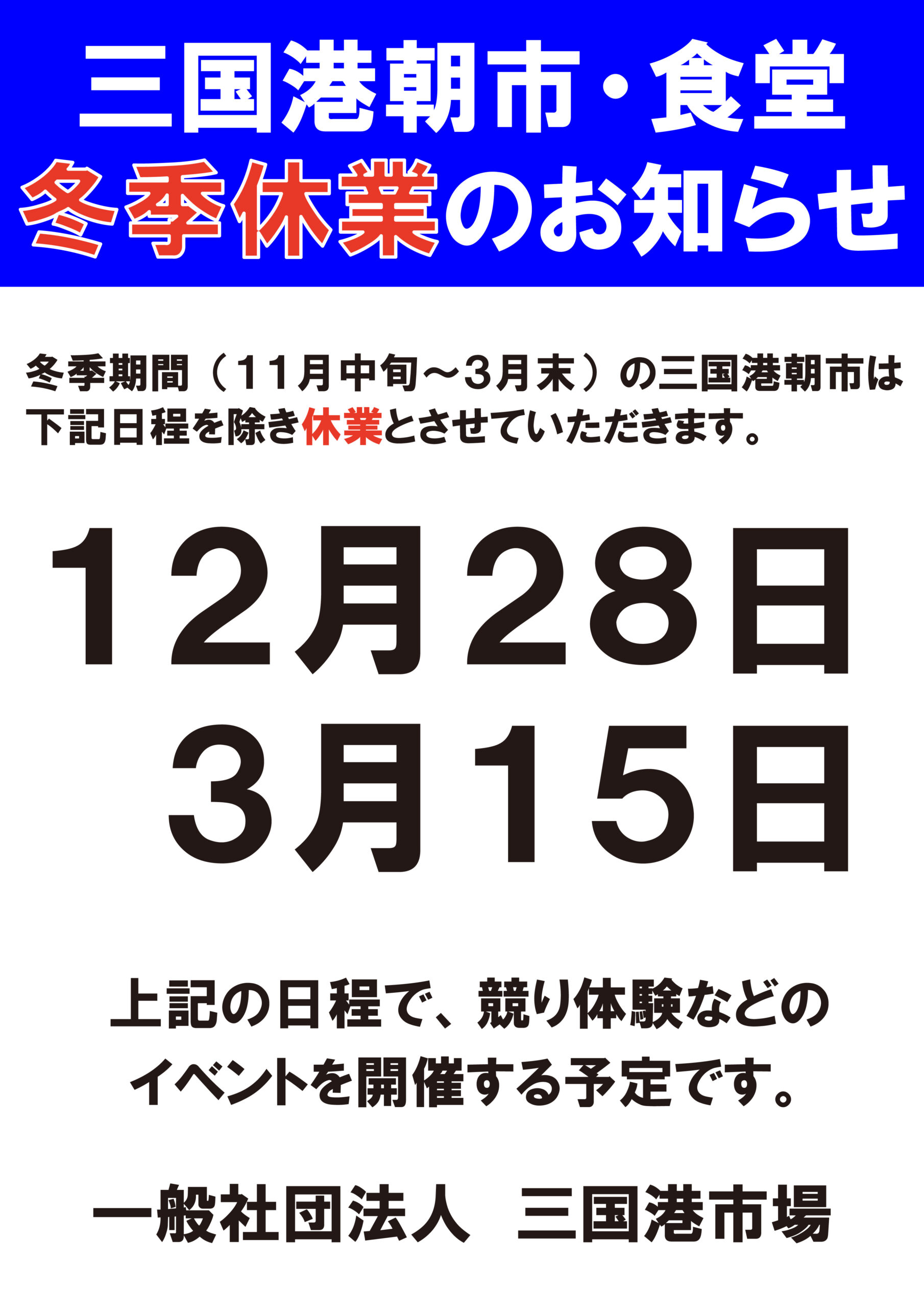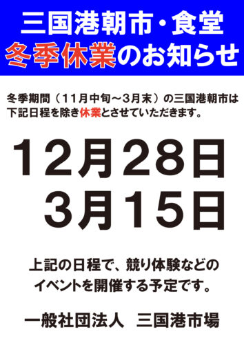 平素より、三国港朝市にご協力、ご来場頂きありがとうございます。