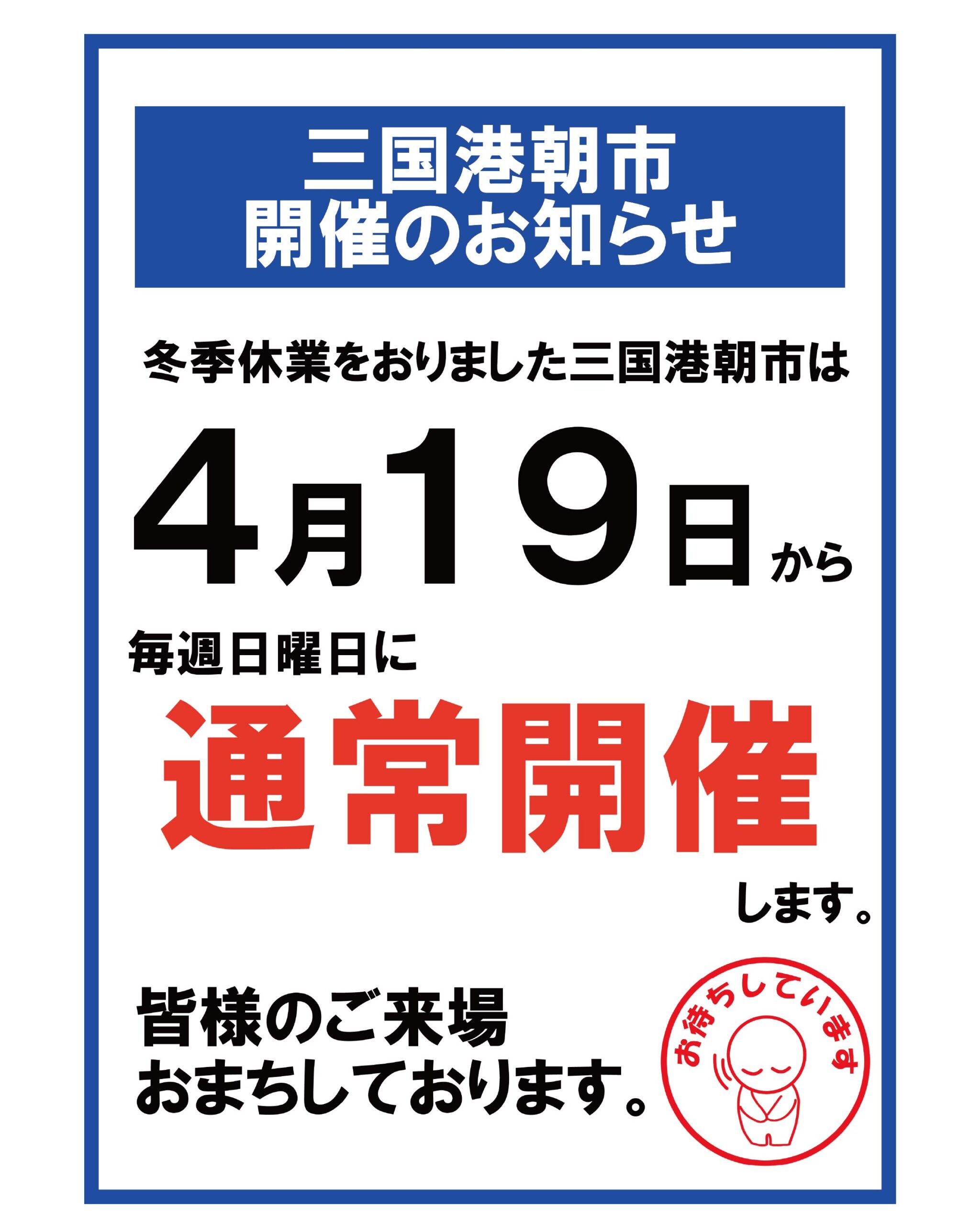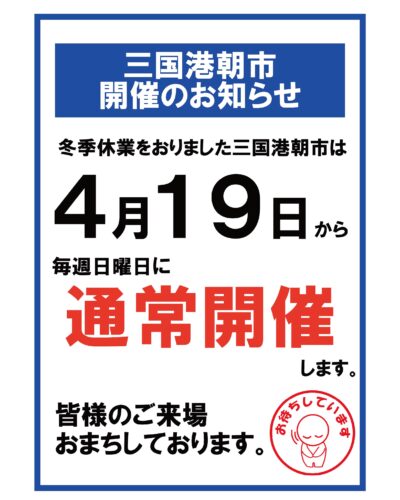 「三国港朝市」は4月19日(日)から通常開催致します。